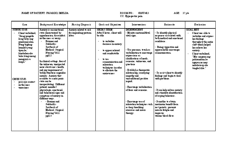 Nursing Care Plan For Anxiety Goals - You have no supporting data that their plans for birth have or are the cause of any anxiety.